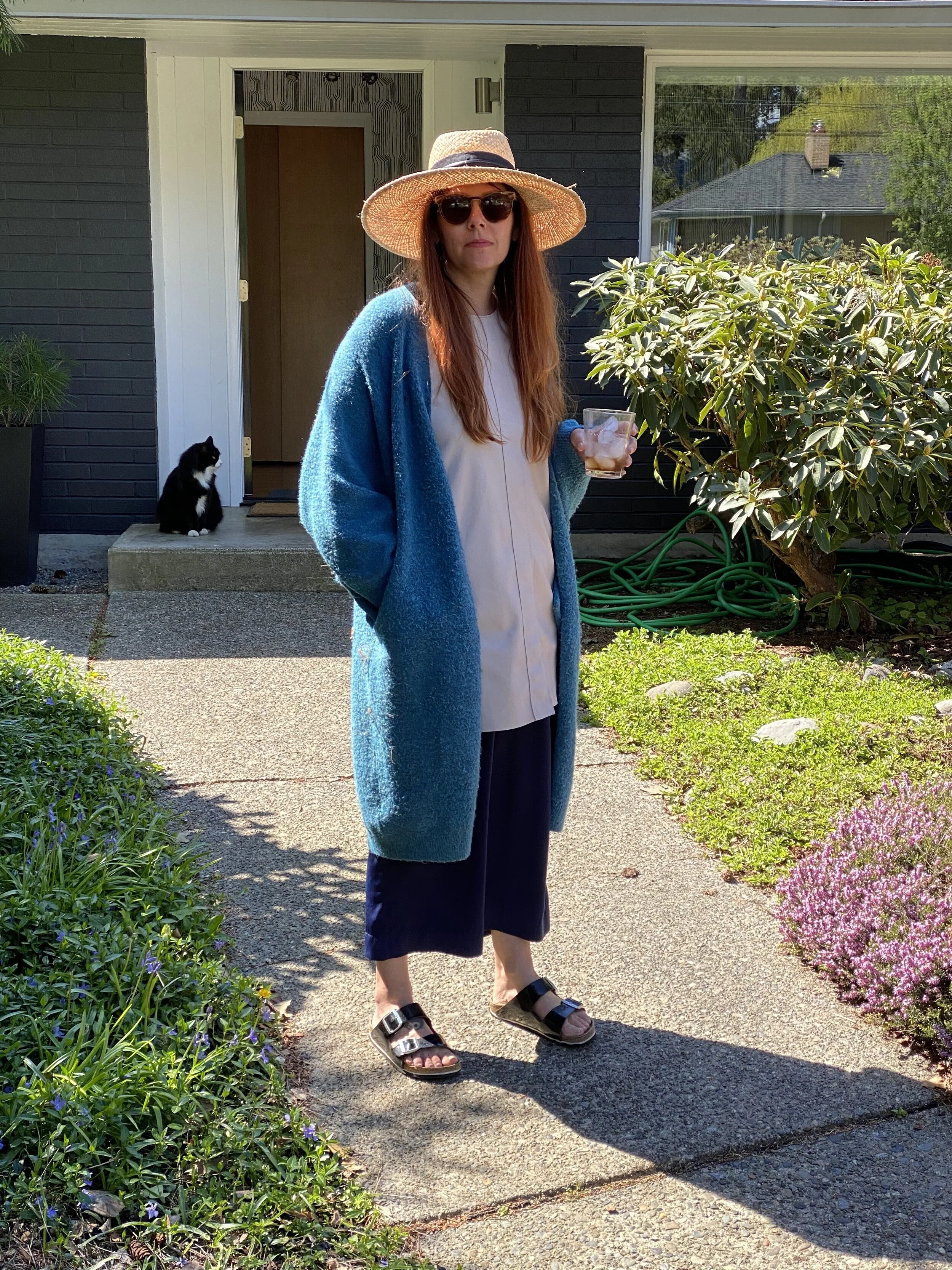 I’ve discovered that some of my cardigans have started to irritate my skin. Sure, it’s possible that I’ve developed some sort of allergy. But, I think it’s just an allergy to restrictive clothing. Opt for pieces that make you feel pretty and are as cozy as a sweatshirt. I also love a fitted sweatshirt, some draped pants, earrings and lipstick topped off with my Adidas when I head out for a walk. Sometimes, a jacket gets layered on top, too. I know! I’m crazy like that.