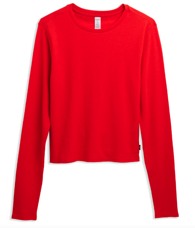 The long stripe elongates your leg and the red draws the eye up for a balanced and intentional look.