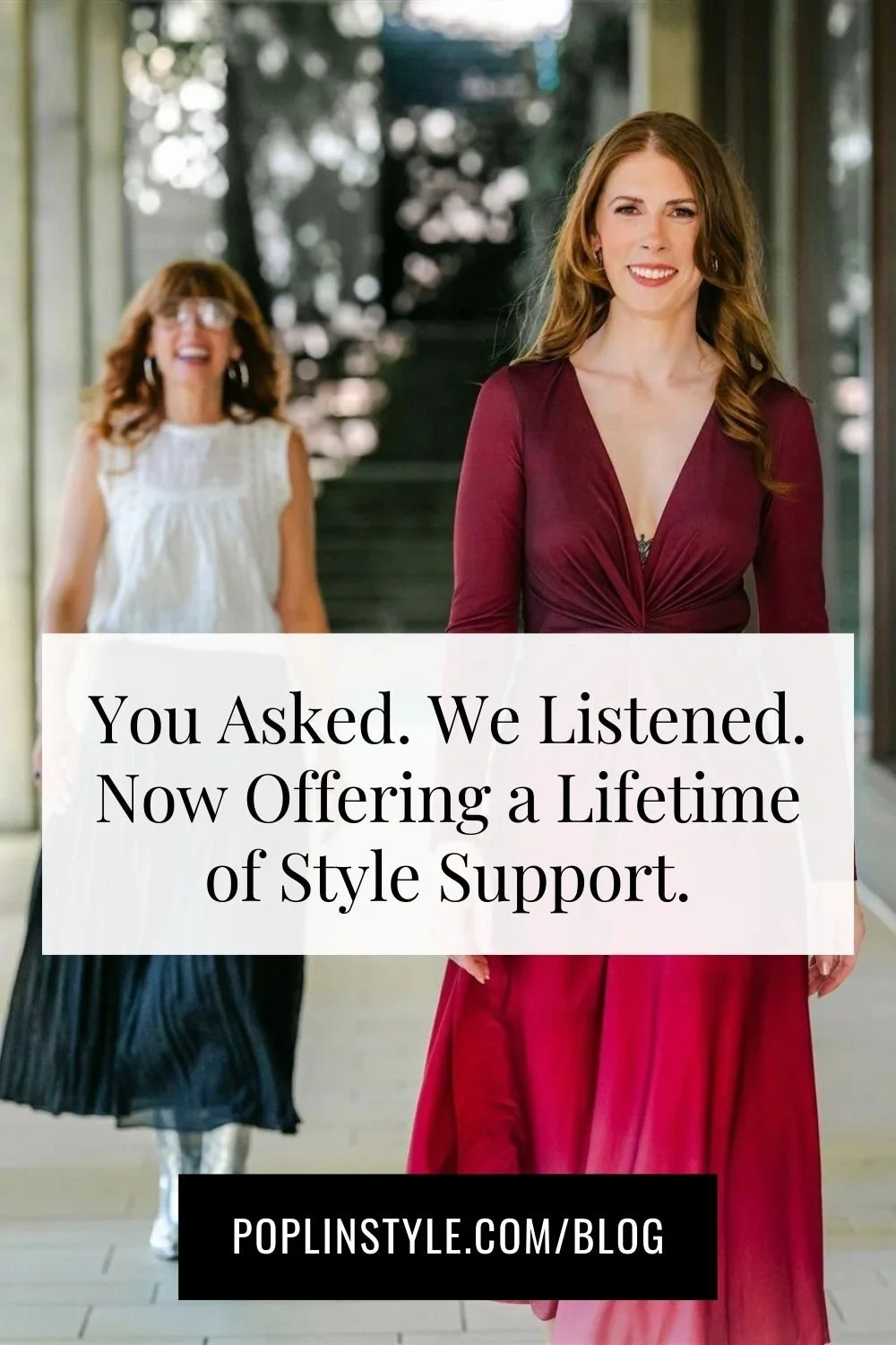 For years, clients have asked me how they could keep the magic going after their Poplin Package. They loved the clarity, the confidence, and the joy they felt — and they wanted that same level of support as their lives and styles continued to evolve. I’ve been listening. And now, after a lot of thought and care, I’m thrilled to say: we’ve figured it out.