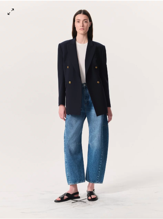 The most common complaint I hear about barrel pants is that they are frumpy or that they make her feel, “bigger all over.” For women who loved skinny jeans, the contrast between barrel jeans and skinnies is even more striking. And, these complaints are spot on. A full length barrel jean can be unflattering. The ideal way to ensure the leg is as flattering as possible is to nail the length. And ankle length barrel pant is always more flattering because you can see the actual barrel shape, making your waist feel smaller in contrast to the rest of the leg. If an ankle length isn’t for you, opt for a full length that does not have a leg break, that is the part of a pant leg that wrinkles because the pant leg hits the top of the shoe. That’s the key.