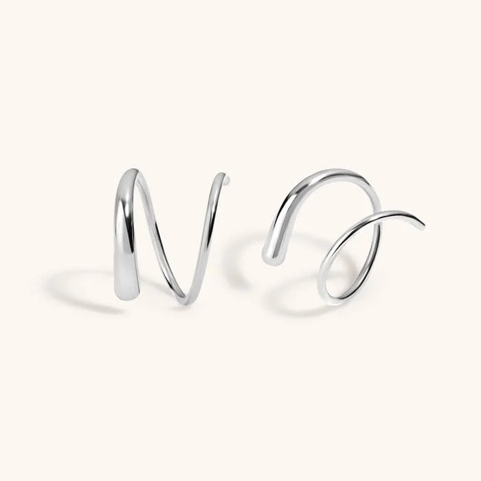 The Twist/Double Hoop Illusion/ Twirl/ Double Huggie: I love how these look. They consist of a single wire that you put on like a corkscrew. You’ll likely be surprised and delighted at how easily they go in—but they also come out just as easily.
